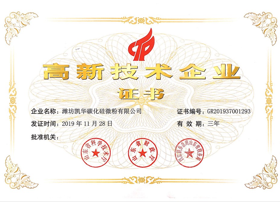 濰坊凱華碳化硅微粉有限公司成立于2002年,國(guó)家高新技術(shù)企業(yè),公司占地40畝,標(biāo)準(zhǔn)廠房19000平方,辦公樓、研發(fā)處2000平方,年生產(chǎn)能力3萬噸。一直從事陶瓷級(jí)微粉的生產(chǎn)銷售,所生產(chǎn)的超細(xì)碳化硅微粉具有純度高、粒形好、穩(wěn)定性強(qiáng)等特點(diǎn),主要用于反應(yīng)燒結(jié)、無壓燒結(jié)、硅碳棒新工藝、重結(jié)晶燒結(jié)、蜂窩陶瓷、機(jī)車制動(dòng)裝置、研磨拋光、金屬防腐表面噴涂、納米隔熱保溫材料等領(lǐng)域。標(biāo)準(zhǔn)產(chǎn)品有:F240、F1200、W40、W28、W20、W14、W10、W7、W5、W3.5、 W2.5、W2、W1.5、W0.5、5S、D3E、100F、RS07、RS100及整形高密度系列綠碳化硅微粉......